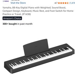 Yamaha, 88-Key Digital Piano with Weighted, Sound Boost, Compact Design, Keyboard, Music Rest, and Foot Switch for Home Practice or Travel, (P143B)$450San Diego, CA