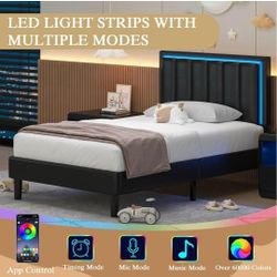 Twin Bed Frames with Headboard, Upholstered and RGB LED Lights, Heavy Duty Wood Slats Support, Noise-Free, No Box Spring Needed, Easy Assembly, black $55Rancho Cucamonga, CA