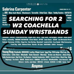 COACHELLA WEEKEND 2 SUNDAY WRISTBANDS$1Los Angeles, CA