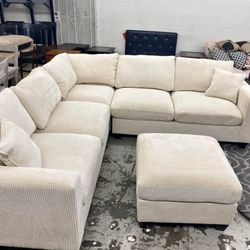 NEW Light Grey Fabric Modern Sectional Sofa and Ottoman Set Ashley style Gray Black Ivory White Beige BIG Discount Furniture Warehouse Glam Couch SALE$499Riverside, CA