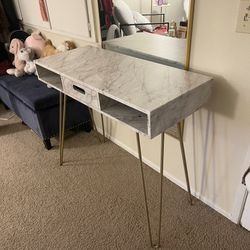 Glam Modern Faux Marble Vanity Console Hallway Entryway Desk Table With Gold Legs $50Fountain Valley, CA