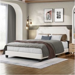 Geneva Upholstered Mattress Ready Boucle Fabric White Queen Bed $140Rosemead, CA