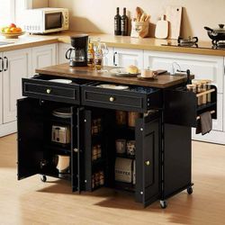 Mobile Kitchen Island, 58" Rolling Island Cart with Power Outlet, Island Table for Kitchen, Black Generous Storage: Features two cabinets,$130Ontario, CA