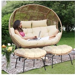 Modern Double Egg Chair with Footrest & Padded Cushions, 2 Person Wide Wicker Lounge Chair with Deep Seating, Extra Large Stationary Loveseat Cozy Cre$200Chino, CA