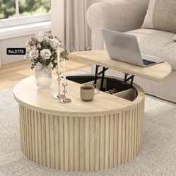 Lift Top Coffee Table with Storage, Round Coffee Tables for Living Room, 34.6'' Farmhouse Fluted Coffee Table, Wood Center Table with Large Hiddern St$95El Monte, CA