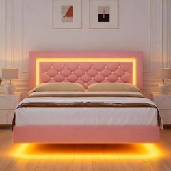 Floating Bed Frame with LED Lights, Upholstered Platform Bed with Diamond Tufted Headboard (Pink, Full)$80Rancho Cucamonga, CA