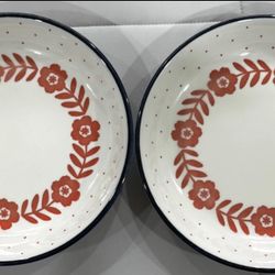 Izawa Japan Floral Pasta Bowls Set of 2 Red Flower Stoneware 9"$44West Covina, CA
