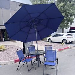 New 6-Piece Patio Dining Set with Glass Table, 4 Folding Chairs, and 10Ft Umbrella$150Fullerton, CA