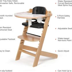 Natural Wooden High Chair for Babies & Toddlers 3-Tier Remove & 2 Adjustable Tray, 8 Adjustable Highchair with Cushions, Easy to Clean (Black)$90Rancho Cucamonga, CA