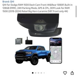 QHI for Dodge RAM 1500 Dash Cam Front 4K&Rear 1080P, Built-in 128GB EMMC, 24H Parking Mode, GPS & CPL, OEM Look for RAM 1500 (2019-2024) Rebel Big Hor$120Tustin, CA