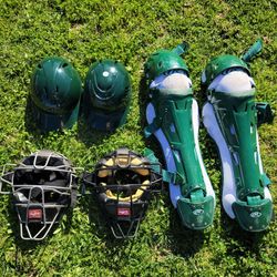 Rawlings Baseball Catchers Umpire Mask, Wire Mask, Coolflo Helmet, Skull Cap, Velocity Leg Guards and Mesh Bag$250Huntington Beach, CA