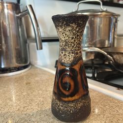 West Germany Fat Lava Pottery 1950S Mid-Century Modern Antique flower, stem vase. Volcanic Lava Glaze.$250Dana Point, CA