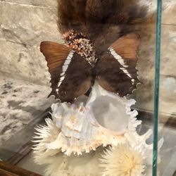 VTG Taxidermy Butterfly On Shell /Floral In A Wooden Framed Glass Shadow Box$50Alta Loma, CA