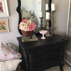 Antique black four drawer dresser with mirror$100Los Angeles, CA