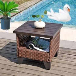 SUNSITT Outdoor Square Side/End Table with Aluminum Slatted Top, Brown Rattan Wicker Accent Table with Waterproof Cover$60Rancho Cucamonga, CA