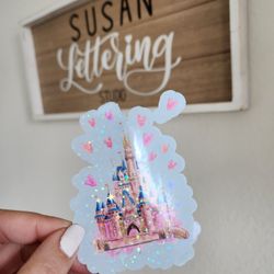 Disney Castle Sticker Holographic Sparkle | Aurora Magic Kingdom Castle Watercolor Mickey Balloons$4Ontario, CA