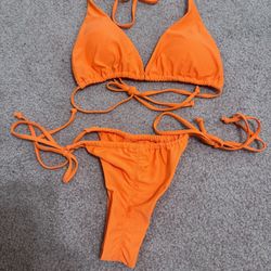 New Medium Orange Neon Festival Rave Outfit Bikini Swimsuit Bathing Suit $14Mount Baldy, CA