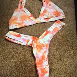 New Large Orange Tye Dye Bikini Bathing Suit Swimsuit Boho Festival Rave $12Mount Baldy, CA