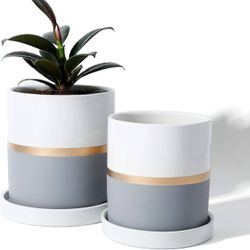 052001 Planter Pots Indoor - 4.9 & 3.9 Inch Modern Home Decor Cylinder Ceramic Flowerpot Bonsai Container with Drainage Holes&Saucer for Plants Flowe$20Ontario, CA