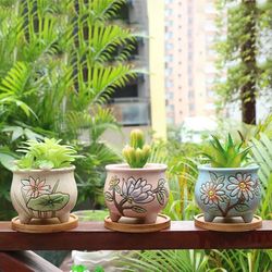 4.5 inch Hand-Painted Ceramic Succulent Planter Pot Modern Desk Cactus herb Flower planters with Bamboo Tray Indoor or Outdoor Set of 3$10Rancho Cucamonga, CA