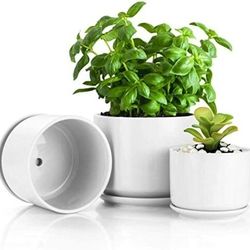 Ā Glazed Plant Pots with Connected Saucers,Modern Ceramic,Set of 3$6Ontario, CA