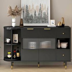 Black Sideboard Buffet Cabinet | Gold Accents | Fluted Glass Doors$250Irwindale, CA