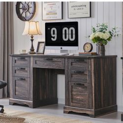 60" Farmhouse Executive Desk, Home Office Desk with Drawers, Charging Station, Keyboard Tray, File Drawer, Storage Cabinet, Wood Rustic Computer Writi$260Rancho Cucamonga, CA