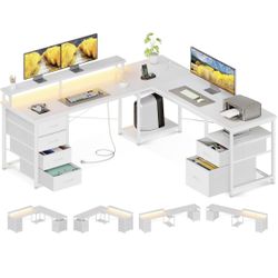 59" L Shaped Computer Desk, 105" Reversible Home Office Desk with File Cabinet & 4 Fabric Drawers$75Ontario, CA