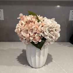 Elegant Faux Hydrangea Flower Arrangement in White Vase$10Chino, CA