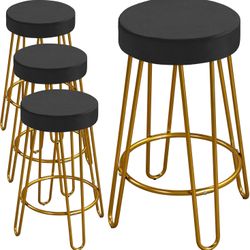 Bar Stools Set of 4, Velvet Round Counter Stools, Backless Counter Height Bar Chairs with Golden Legs for Kitchen Dining Room Pub Cafe, Black $90Rosemead, CA