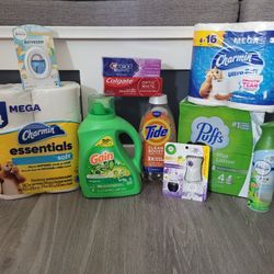 Household Bundle, Gail Liquid Detergent, Tide Fabric Rinse, Charmin, Puffs, Colgate, Crest$30Rancho Cucamonga, CA