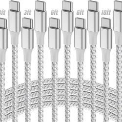 new USB C Cable, 5 Pack 3/3/6/6/10FT 60W Fast Charging USB C to USB C Cable, Nylon Braided Type C Charger Cable for iPhone 17/16/15/iPad Pro/MacBook A$10Pomona, CA