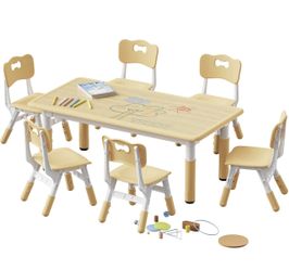 Kids Table and 6 Chairs Set, Height Adjustable Graffiti Desk, Preschool Activity Art Craft Table, for Daycare Classroom Home Boys and Girls Age 3-12 ($90Alta Loma, CA