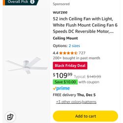 White wurzee 52 inch Ceiling Fan with Light$110Montclair, CA