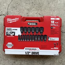 MilwaukeeSHOCKWAVE 1/2 in. Drive SAE 6 Point Impact Socket Set (19-Piece)$100Laguna Hills, CA