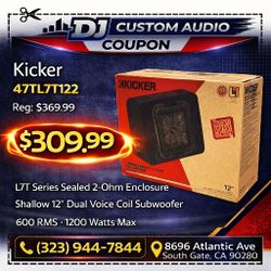 Kicker TL7T12 Shallow Sealed Box 12" Dual Voice Coil Subwoofer 1200 Watts 46TL7T122 🚨 Payment Options Available 🚨 No Credit Needed 🚨 $1Buena Park, CA