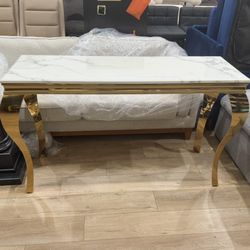 50in Gold Console Table, White and Gold Entryway Table with Polished Stainless Steel Curved Legs, Luxury Sofa Table for Entrance, Living Room, Front D$125Arcadia, CA