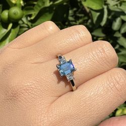 New 1.4 CTW. VVS2 Emerald Cut Fancy Intense Blue Lab Grown Diamond Three Stone 14K Gold Engagement Ring with two Princess Cut Square Accent Diamonds $5,850Irvine, CA
