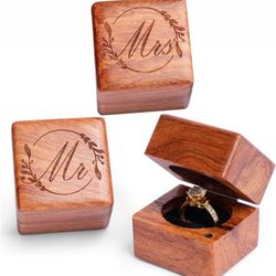 Mr and Mrs Ring Box – Handmade Wood Ring Box for Wedding day Ring Boxes Small Engraved for Wedding Ceremony, Rustic Ring Holder Box, Ring Storage Box $10Anaheim, CA