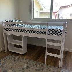 White Twin Low Loft Bed With Attached Desk, Shelving And Mattress $250Huntington Beach, CA
