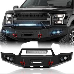 Front Bumper Compatible with 2018 2019 2020 Ford F150 (Excluding Raptor) Heavy Duty Pickup Truck Bumper with Winch Plate, Sensor Holes, 5 x LED Lights$525Corona, CA