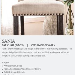 SANIA BAR CHAIR (2/BOX) Beige Color New In Box$399Ontario, CA
