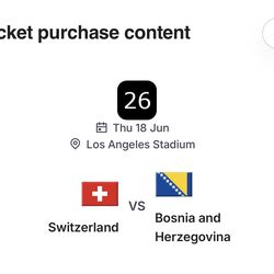 Switzerland vs Bosnia and Herzegovina World Cup$1,765Canoga Park, CA