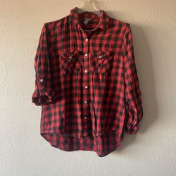 Charlotte Russe, Women’s Red & Black Plaid Button Up Front Pocket Shirt, Size L$15Oxnard, CA