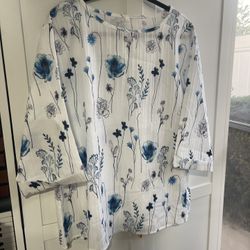 Women’s Blouse 2xl White With Blue Flower Print 3/4 Sleeve$10Camarillo, CA