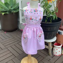Heather Sue Sews Unicorn Pink Gingham Apron Kids Size 2-4 NEW$45Ventura, CA
