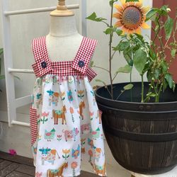 Heather Sue Sews Farm Animals Red Gingham Dress Kids Size Age 2-4 NEW$45Ventura, CA