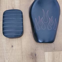 Harley-Davidson Sportster 883 Custom Design 15" Solo Seat - Black W/Pink Stitched Flames + Passenger Pad Combo$150Thousand Oaks, CA