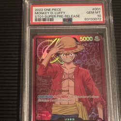 One Piece Monkey D Luffy St-01 Super Pre Release Psa 10 $4,000Simi Valley, CA