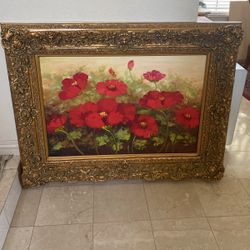 Poppy Red Flower Oil Ptg With Ornate Gold Frame 37x49 “$199West Hills, CA
